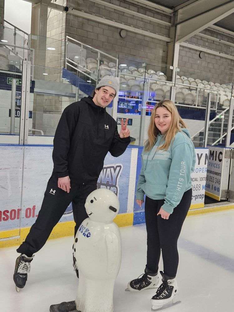 Near the end of the sessions, some of the young people felt more confident to try wearing ice skates for the very first time, others felt more confident to skate independently without the use of an aid. At the end of this sessions the young people chatted enthusiastically with Joe about how they had enjoyed themselves and their plans for the next sessions. To further support these sessions, we were invited to attend a Solway Sharks hockey match, so we could see Joe and the team in action.